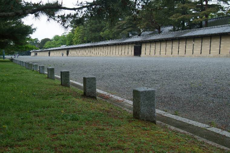 明日は葵まつりです。撮影ポイントの下見を兼ねて京都御所を一周します。端正な土塀を背景にして玉砂利の道を観光客や散策の人が行き交います。タンポポの咲く緑地ではお母さんと子供の姿も。とにかく広くて、静かな安らぎの空間です。(2006.5.14.) |