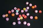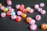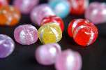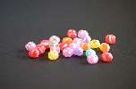 ■ 京都・銀閣寺の門前で買ってきた、かわいい京あめ。アップで見ると紙ふうせんのようにも見えて、表面には砂糖の粉が噴いています。今日は自宅の食卓に黒い紙を敷いての撮影ですが、時々は、そばで見つめる孫さんたちの口の中にも飛び込んでいきます。(2004.1.21.) |