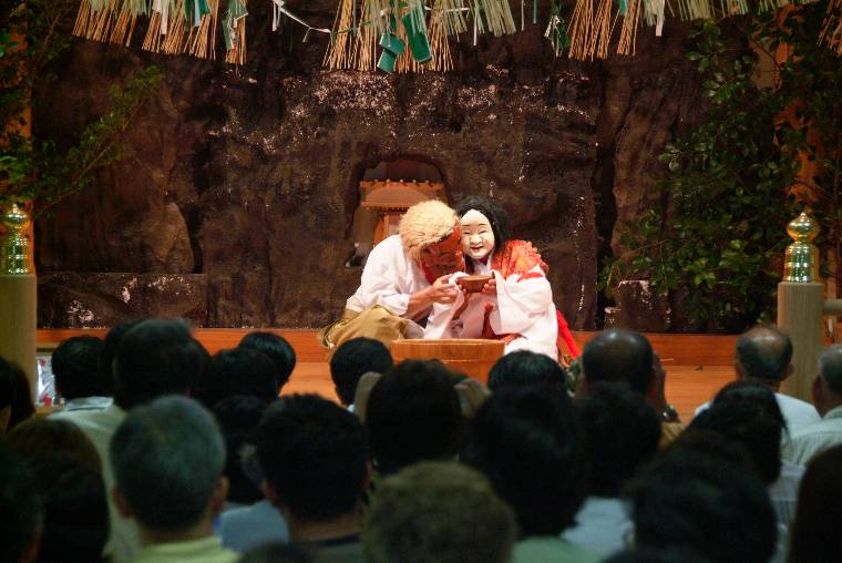 ■ 今日はあこがれの高千穂にやってきました。パンフレットでいつも見る高千穂峡”真名井の滝”を何枚も何枚も撮ってしまって、後の整理がたいへんです。夜は高千穂神社の観光夜神楽。素朴で異次元の神話の世界に浸ります。(2007.8.17〜18.) |