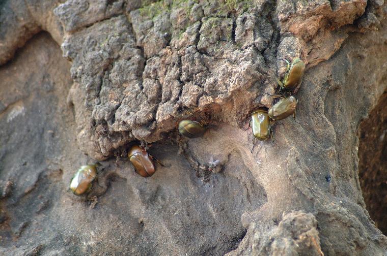 ![]() 黄金虫がクヌギの 樹液に群がっている |