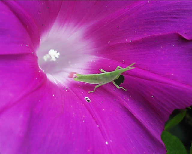 ![]() バッタが朝顔の花を 食べている |