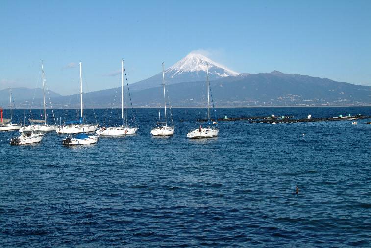 ■ 憧れの西伊豆をドライブしよう。伊豆長岡-大瀬崎-戸田-修善寺のコース。紺碧の海と、その向こうにはずっと富士山が一緒です。走っては眺めてのドライブで、結構時間がかかります。1月ですが、菜の花が咲き、車は窓を開けての春風のドライブです。 (2004.1.14.) |