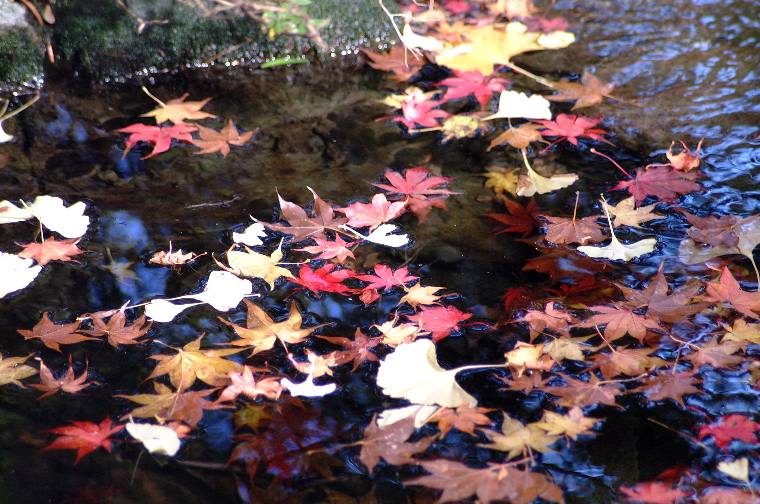 最乗寺の紅葉は、うっそうとした杉林の緑の中で、赤がひときわ鮮やかです。境内はいたるところにカメラマンです。(2002.11.11.および11.20.)