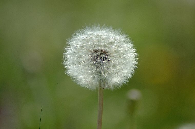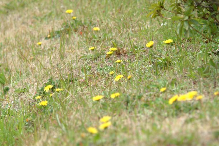 陽だまりの枯れ草の上に、たんぽぽの黄色が鮮やかです。次から次へと銀色の綿帽子が生まれますが、強い風に飛ばされそうになりながらも、 まん丸のままで頑張っているのが意外です。 (4〜7月)