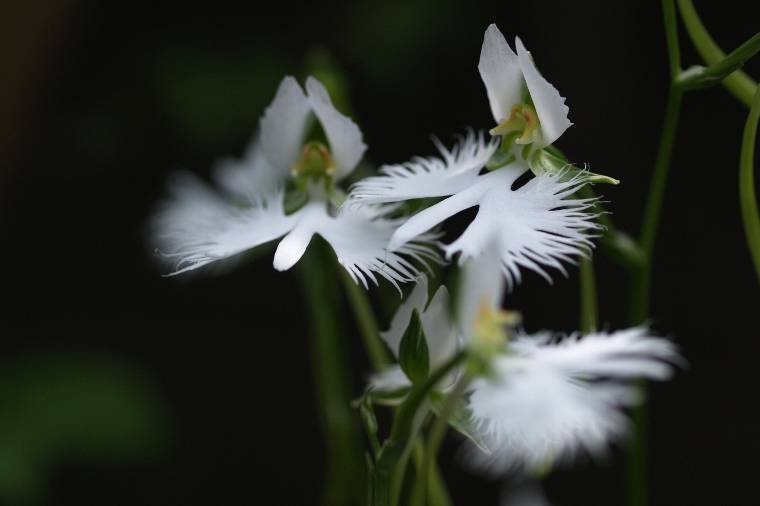 暑い8月にサギソウが咲いています。緑の茎に真っ白の花、白サギを思い起す不思議な花が涼を誘います。(2006.8.9.)