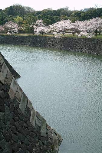 ■ 大手門から皇居に入って広い芝生の東御苑、北桔橋門を出て千鳥ケ淵へ。お堀と石垣に映える桜に惹かれて、多くの人が”徘徊”を続けています。高速道路が貫く千鳥ケ淵は、運転手さんたちにも感動の桜スポットだそうですが、運転にはご注意を。(2004.3.31.) |