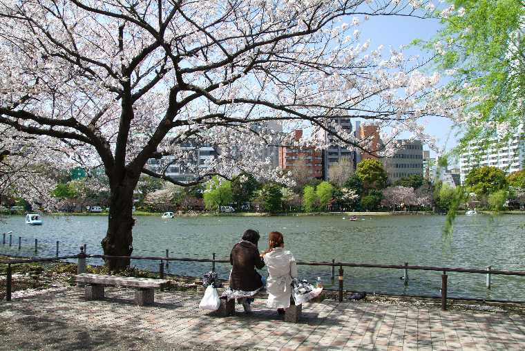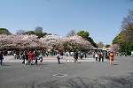■ 学校が春休みの上野公園、動物園に向かう子供達と花見の客があふれています。会社勤めのスーツ姿の人も多く、 若い人達は朝から場所取りに奮闘するお花見宴会のメッカで、雨が降れば傘をさしながらでも盛り上がるのがここの習わしです。 |
