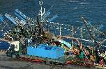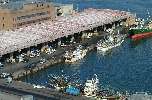 今年の銚子漁港はサンマが豊漁で、漁の期間が12月20日まで延長されるとのこと。大きな集魚灯を備えた大型漁船が行き交い、広い漁港のいたるところでサンマの水揚げが行なわれています。おこぼれをもらうカモメの数も半端なものではありません。(2003.12.9.) |
