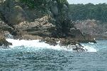 | 宇久井半島の絶壁、左手は勝浦温泉 | 勝浦温泉望遠 | ||