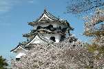 ■ 夕べからの雨があがり、今晴れたばかりのすっきり快晴の彦根城です。お城と桜がしっくりとマッチした、さすがは国宝さんの桜の風景で、観光客の皆さんも和やかにうらうらのニッポンの春を楽しんでいます。(2004.4.8.) |