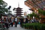 今日は浅草・浅草寺境内でのほおずき市です。ほおずきがいっぱいの鉢に風鈴がおまけで2500円。