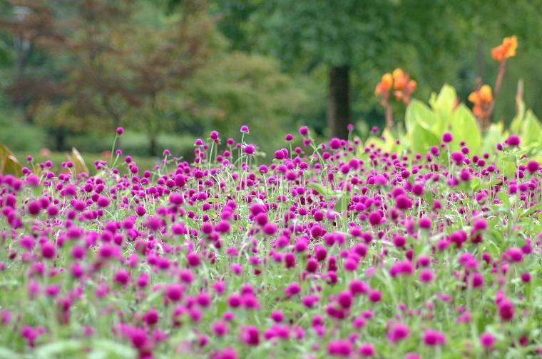 ■ ”おわら風の盆”訪問の途中に立ち寄った 砺波市のチューリップ公園、夏の終わりの風景です。盛りを過ぎた花たちと収穫前の大ひょうたん、それに大きな水車の見える風景の中に、お母さんと小さな子供が朝の散歩を楽しんでいます。(2005.9.3.) |